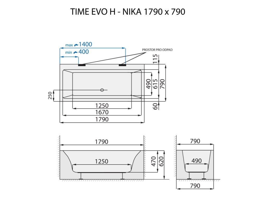Solitérní vana Time Evo H - NIKA Vám dopřeje maximální volnost při plánování koupelny. Ostré křivky vany si s dalším vybavením dokonale padnou. Baterii a ostatní příslušenství navíc snadno umístíte na široký okraj vany.