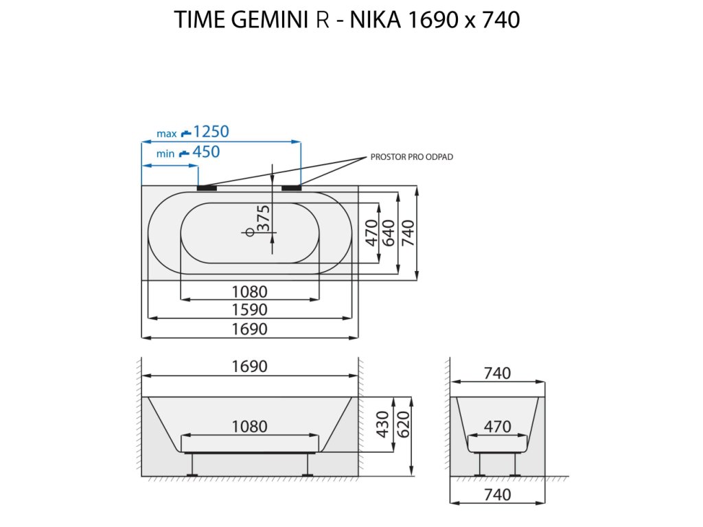 Volně stojící vana TIME GEMINI R - NIKA se vyznačuje zaobleným předním panelem, čímž vytváří prostor pro snadný vstup do vany. Je ideální pro umístění do niky. Praktické rozměry umožňují instalaci i do menších koupelen.