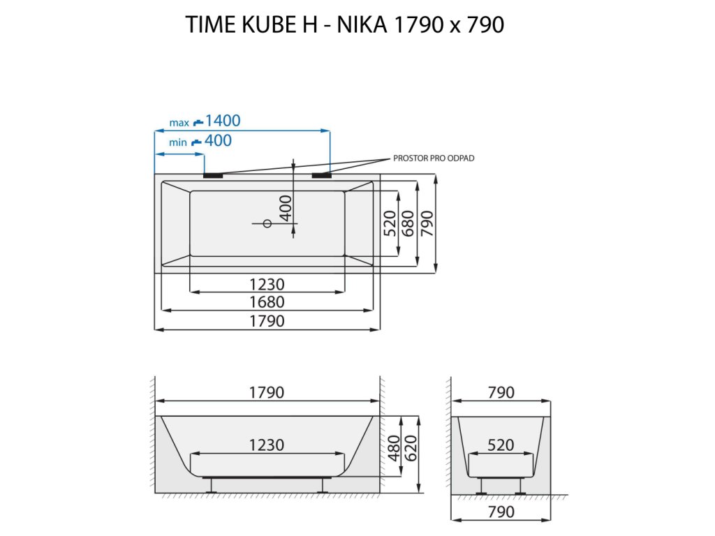 Volně stojící vana TIME KUBE H - NIKA se vyznačuje minimalistickým tvarem a je vhodná pro umístění do niky. Komfortní rozměr a velkoryse tvarovaný symetrický vnitřní prostor zaručuje příjemnou relaxaci i ve dvou. Všechny tři rozměrové varianty nabízí dokonalou kombinaci moderního tvaru, kvality materiálu a poctivého řemeslného zpracování.