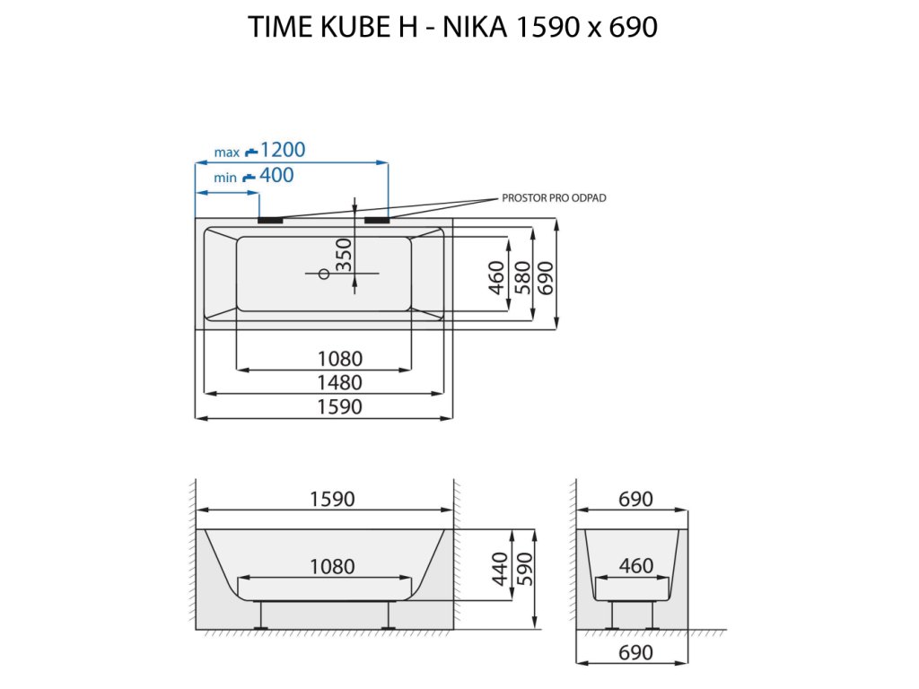 | Provedení | samonosná volně stojící vana ke stěně |