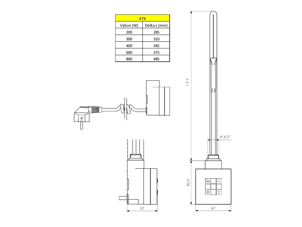 KTX - elektrická topná tyč s designovým termostatem. Hranatý design vhodný pro všechny typy radiátorů. Symetrické provedení umožňuje instalaci na levou i pravou stranu radiátoru.