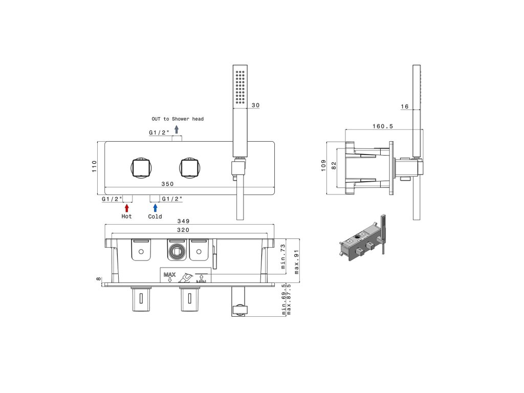 Sapho NOTOS podom. sprchová termost. baterie, ruční sprcha,2 výstupy,chrom NN493