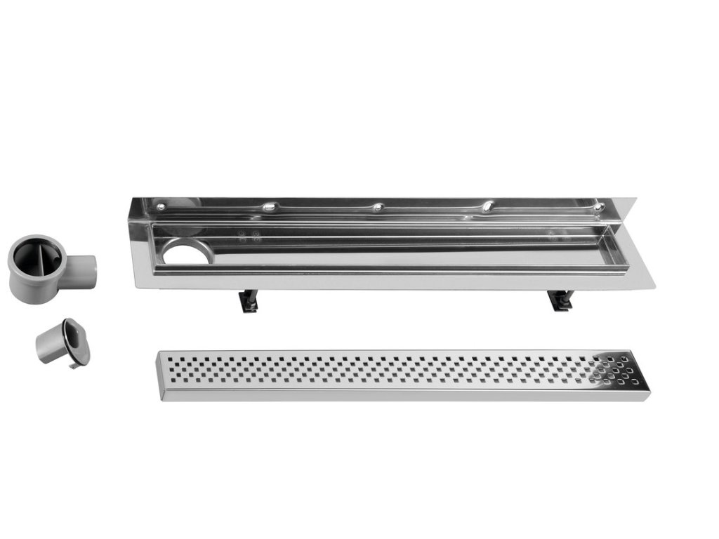 - Nerezové kanálky s otočným plastovým sifonem pro jednoduché připojení k odpadu