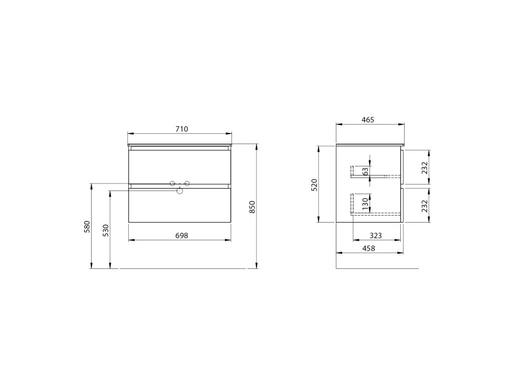 Zásuvky jsou vybaveny výsuvy s pomalým dojezdem a automatickým dovřením. Úložný prostor lze rozšířit přidáním doplňkových skříněk ESPACE. Nábytek je dodáván ve smontovaném stavu, připravený k okamžité instalaci.