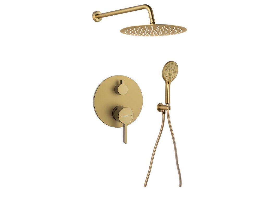 Sapho ICONIC podomítkový sprchový set s pákovou baterií, 2 výstupy, vyústění, zlato mat AF042GB-01
