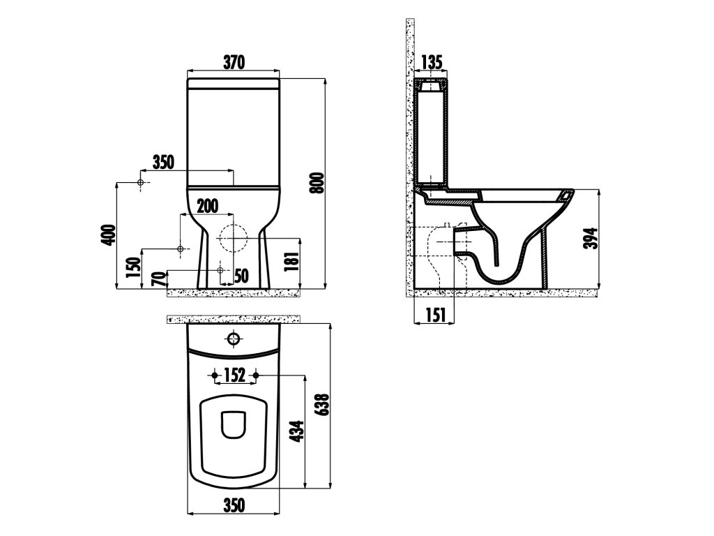 - WC mísa - zadní vývod odpadu (spodní připojení lze vytvořit pomocí připojovacího kolena nebo flexi připojení).