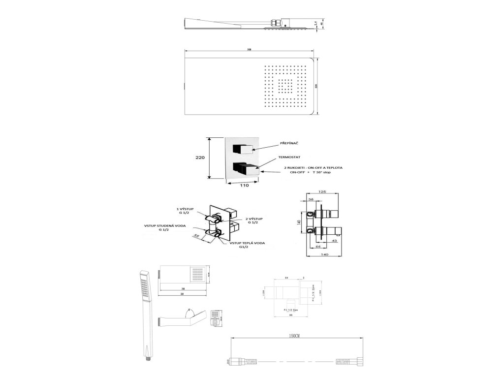 Sapho LATUS podomítkový sprchový set s termostatickou baterií, box, 2 výstupy, chrom 1102-62-21