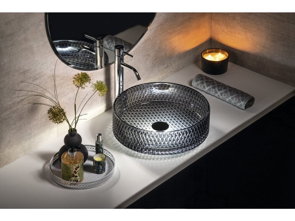Sapho MARAGUA skleněné gravírované umyvadlo na desku Ø 39,5cm, černá TY214