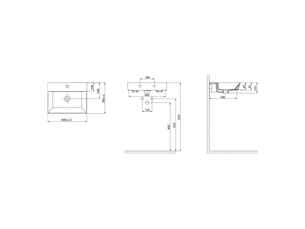 Aqualine ORION keramické umyvadlo 49x38,6cm, bílá 27050