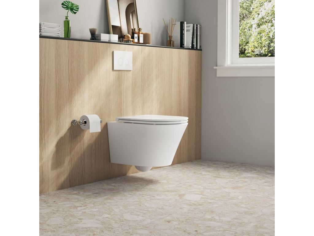 Rimless (NoRim) – toalety bez tradičního oplachového kruhu. Hladký povrch bez dutin a záhybů. Oplachová voda vytéká rozdělovačem vody pouze ze zadní části WC mísy a díky speciálnímu tvaru keramiky dokonale opláchne vnitřní prostor. Výhodou je snadná údržba a čištění WC mísy.