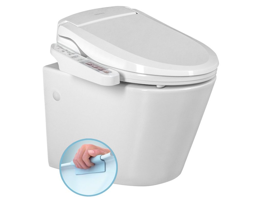 | Funkce bidetu | Bidetová a dámská tryska, Nastavitelná poloha trysek, Nastavitelná teplota vody, Nastavitelný tlak vody, Oscilační pohyb trysky, Masážní oplach, Teplovzdušné sušení, Vyhřívané sedátko, Dotykový senzor v sedátku, LED noční osvětlení, Automatické čištění trysek, Úsporný režim ve stand by |