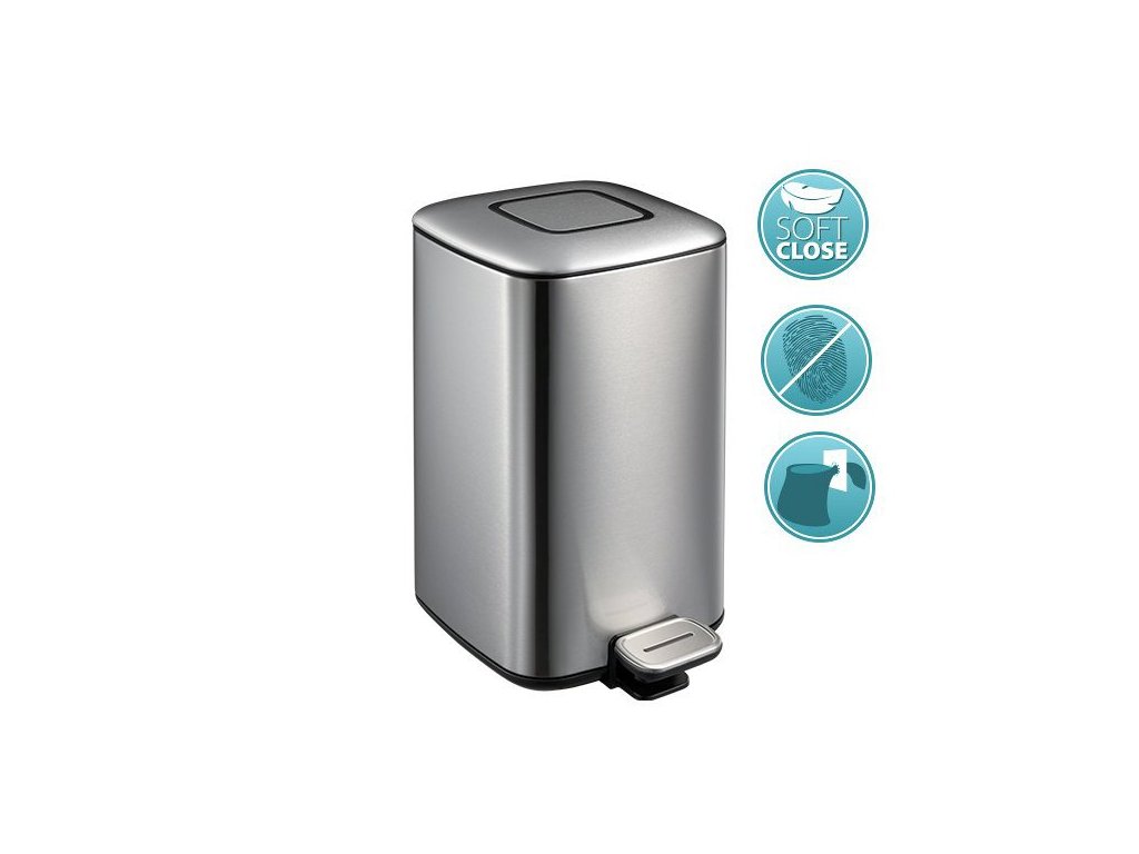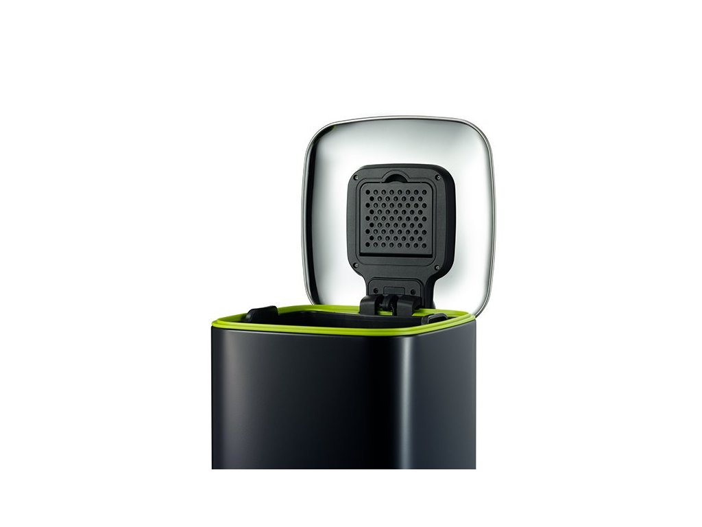 Tělo koše tvoří kvalitní nerezová ocel s povrchovou úpravou proti otiskům prstů. Poklop je vybaven technologií Soft Close, která umožňuje tiché a plynulé dovírání víka, ale zároveň lze zajistit zablokování otevřeného víka.