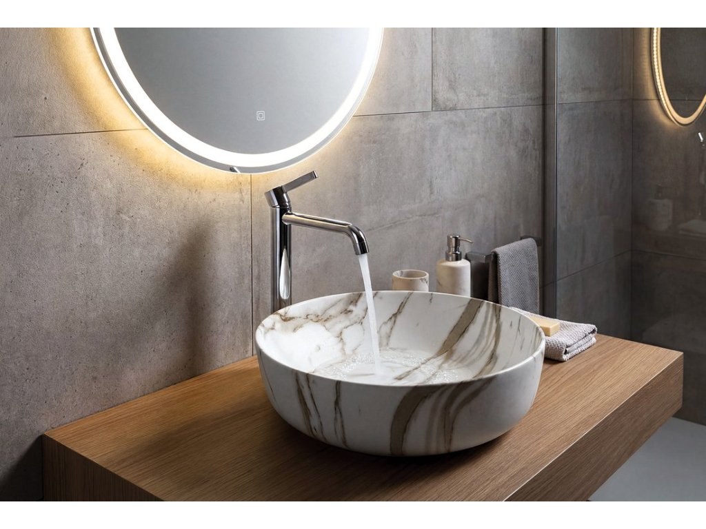 Sapho RONDEA keramické umyvadlo na desku Ø 41cm, bianco carrara AR445BC