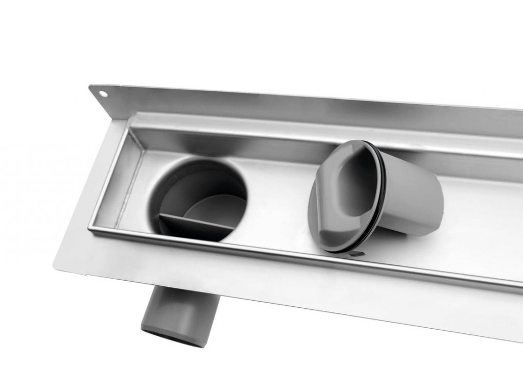 - Nerezové kanálky s otočným plastovým sifonem pro jednoduché připojení k odpadu