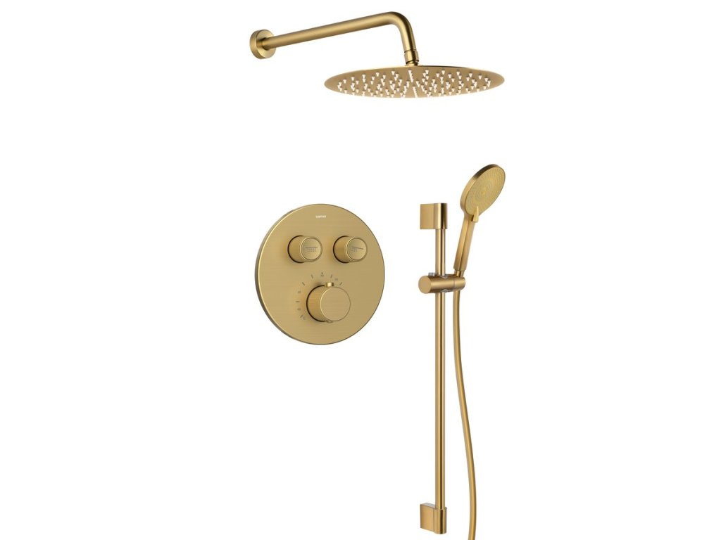 Sapho SMART SELECT podomítkový sprchový set s termostatickou baterií, 2 výstupy, posuvný držák sprchy, zlato mat RP032GB-02