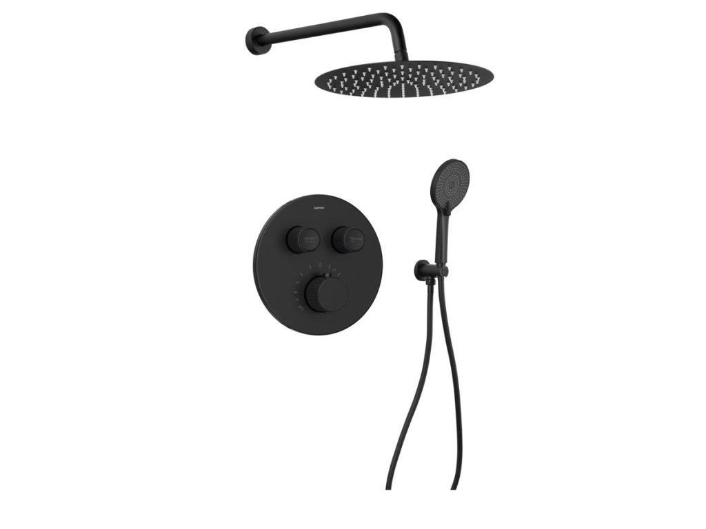 Sapho SMART SELECT podomítkový sprchový set s termostatickou baterií, 2 výstupy, vyústění, černá mat RP032B-01