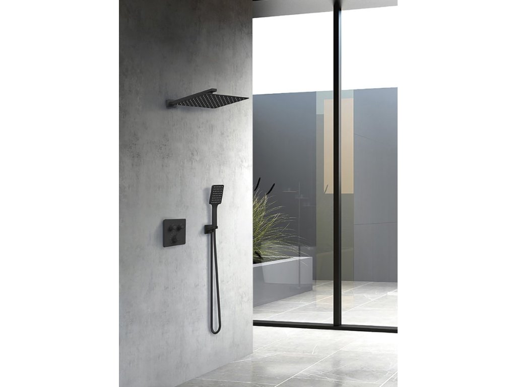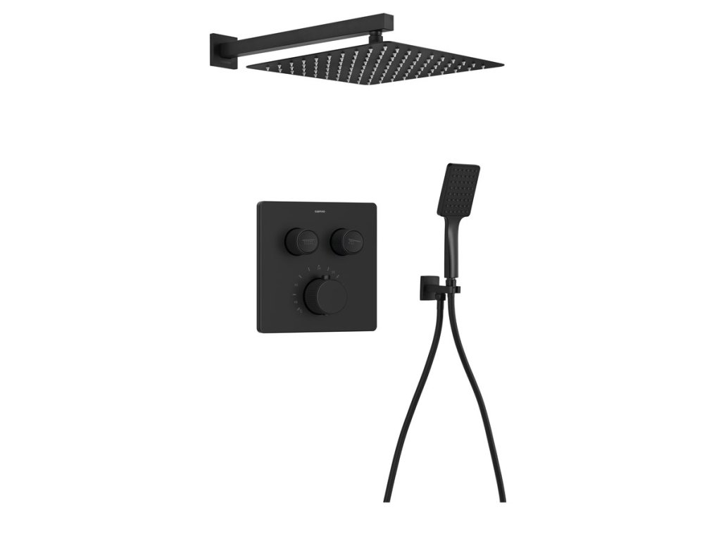 Sapho SMART SELECT podomítkový sprchový set s termostatickou baterií, 2 výstupy, vyústění, černá mat RP042B-01