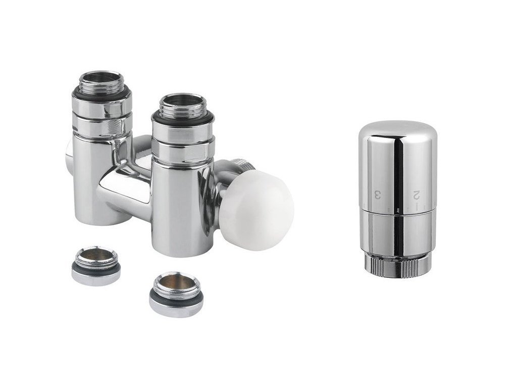 Designový rohový ventil s termostatickou hlavicí určený pro radiátory se středovým připojením 50mm s vnitřním závitem G1/2". Je vhodná pro přípojení, kde zákazník předpokládá kombinaci s elektrickým topným tělesem.Ventily jsou osazeny těsnícími O-kroužky pro spolehlivou a rychlou montáž.