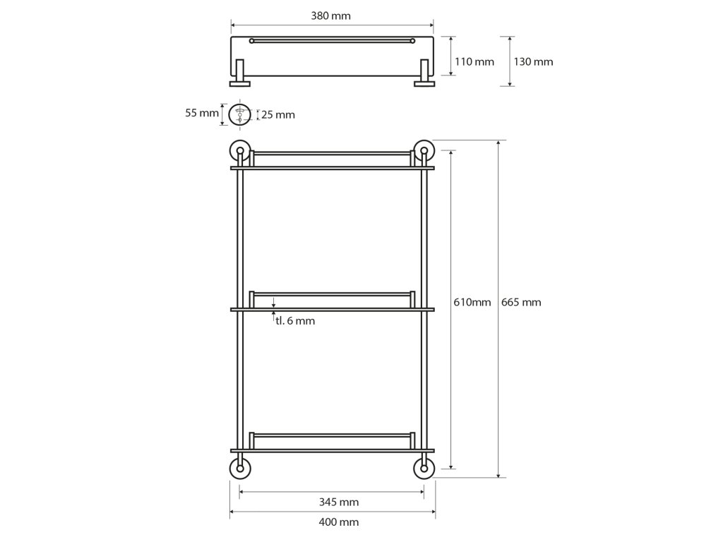 Sapho X-ROUND E skleněná polička trojitá s hrazdou 380x675x130mm, chrom XR608