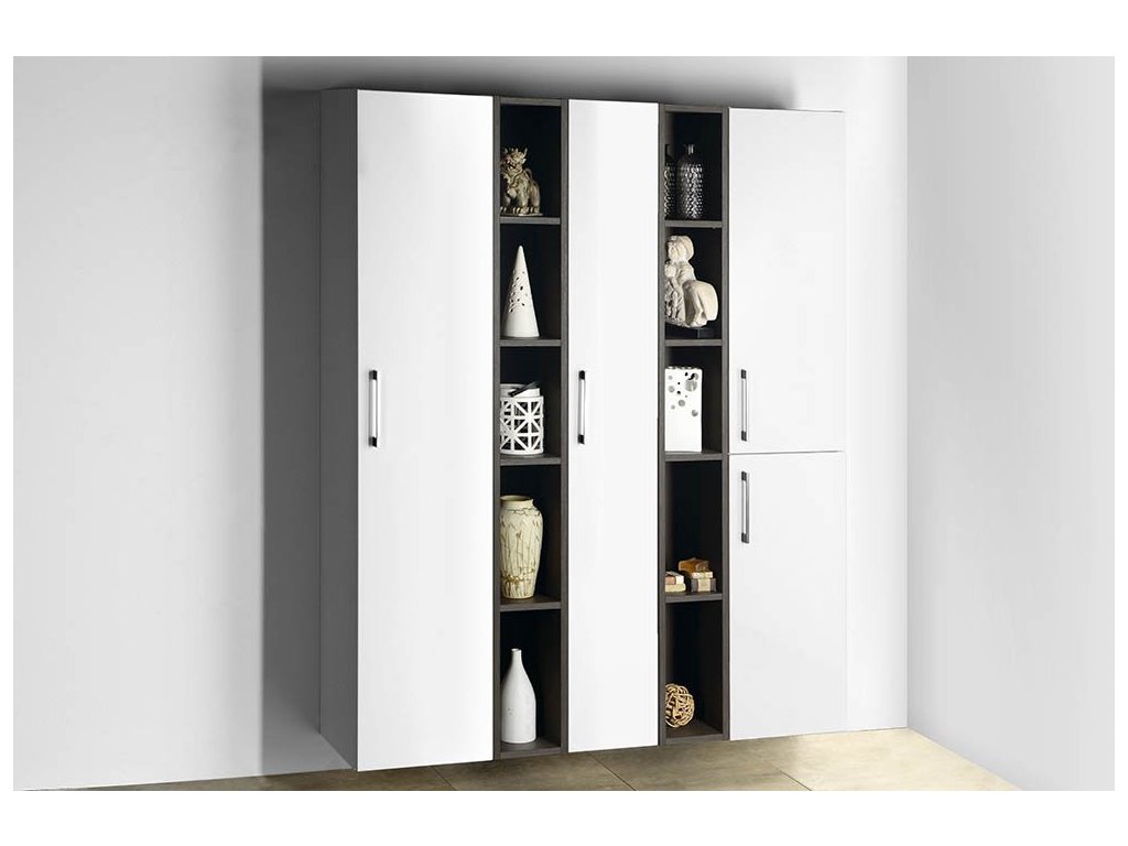 Sestava vysokých skříněk ESPACE, barva: bílá a borovice rustik