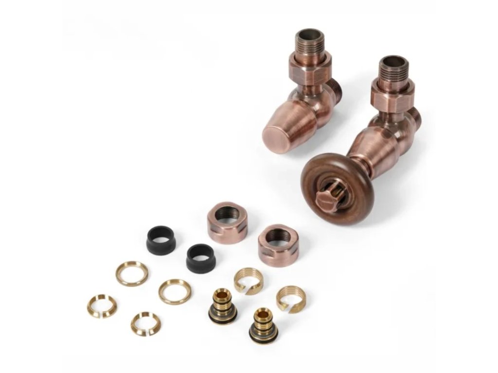 Terma kompletní připojovací sada WOOD ventilů termostatická, rohová, kartáčovaná měď