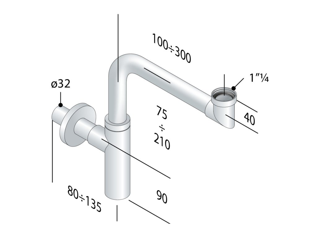 Omp Tea TOTI umyvadlový sifon šetřící místo, 5/4" odpad 32mm, chrom 711.215.5.K