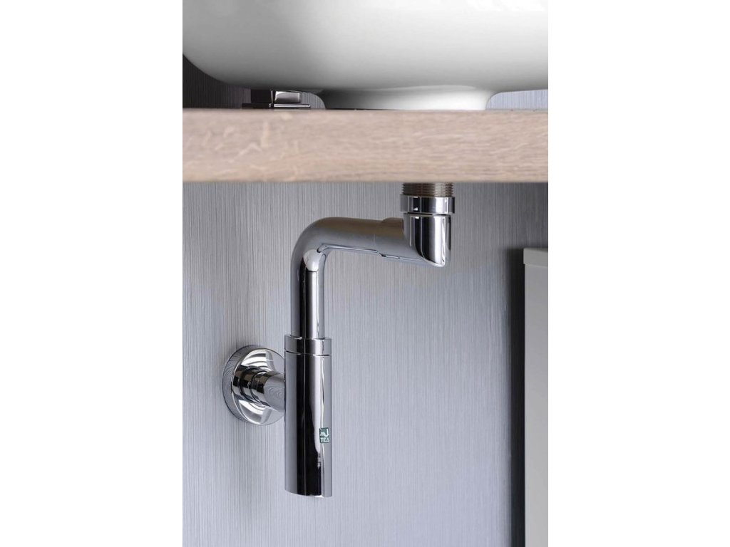 Jedná se o systém, kde trubka těsně pod umyvadlem odvede vodu ke zdi a teprve tam ji odvádí svisle dolů. Toto řešení je vhodné například do koupelnového nábytku, kdy sifon nebrání využití police/zásuvky, pro umyvadla s policí nebo k umyvadlům pro tělesně handicapované.