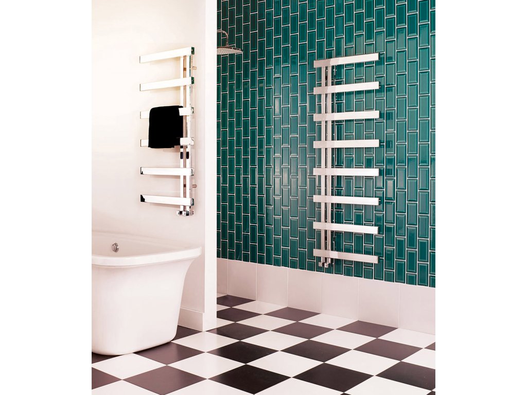 Designový radiátor Zehnder Alban ze skupiny Studio Collection je designový produkt vyrobený z ručně leštěné nerezové oceli s vodorovně uspořádanými hranatými trubkami (50 x 30 mm) a svislými sběrnými trubkami (30 x 30 mm). Ručníky lze jednoduše zavěsit nebo nasunout jednou rukou. Tepelné výkony měřené dle EN 442 s označením CE. 4x ½ " vnitřní závit na koncích svislých sběrných trubek. Možnost výběru montáže vlevo nebo vpravo, zdola (přívod/zpátečka na levé nebo pravé straně), rozteč 50 mm. 2x ½ " odvzdušňovací ventil nahoře. Z výroby předinstalováno jako provedení pravé. Součástí dodávky jsou elegantní chromované stěnové konzole.