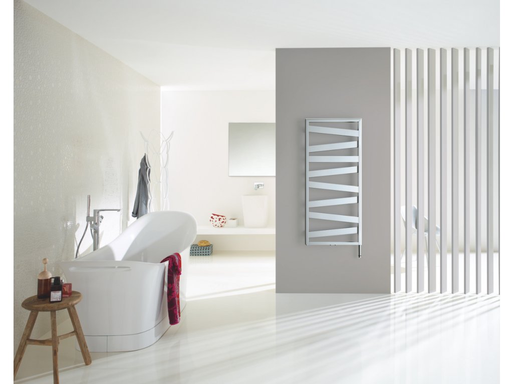 Jako by ocelový pás obepínal tento koupelnový radiátor: Zehnder Kazeane přesvědčí moderním designem a smyslem pro praktičnost. Jeho diagonálně uspořádané ploché trubky jsou inspirovány víceúrovňovými architektonickými díly. Velkorysé otvory poskytnou celé rodině dostatek místa pro zavěšení více ručníků. Tato kombinace tvaru a funkčnosti činí z tělesa Zehnder Kazeane radiátor, který přináší do koupelny prvotřídní komfort. K dostání téměř ve všech barvách a povrchových úpravách dle přehledu barev Zehnder