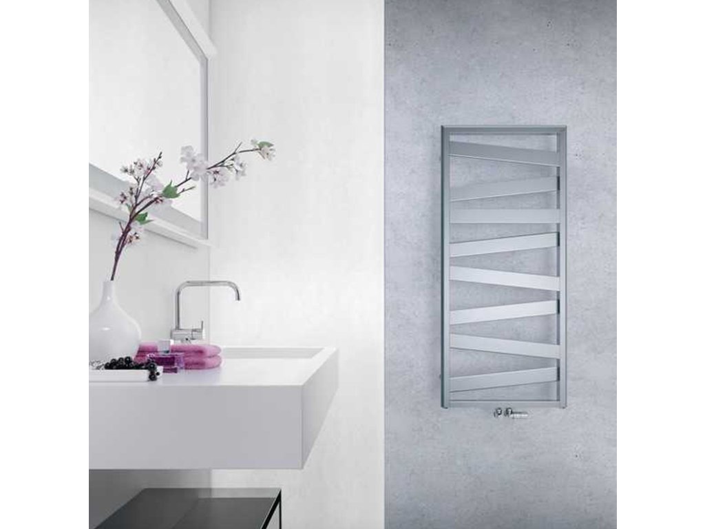 Unikátní design od známých návrhářů King & Miranda. Půvabný i praktický. Velkorysé otvory umožňují pohodlné zavěšení a sušení více ručníků. Dvě úrovně šikmých plochých trubek zvyšují jeho inovativnost. Využitelný kdekoliv v interiéru, nejen v koupelně. Vhodný pro teplovodní, kombinované i čistě elektrické vytápění v téměř 50 barvách a v chromu.