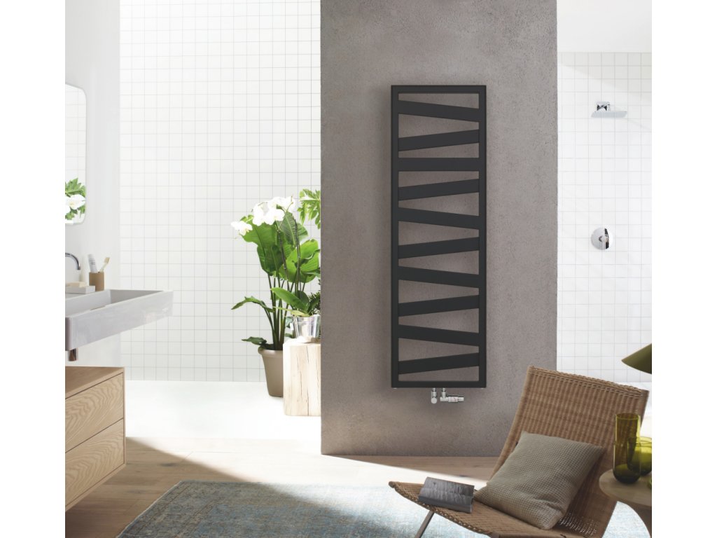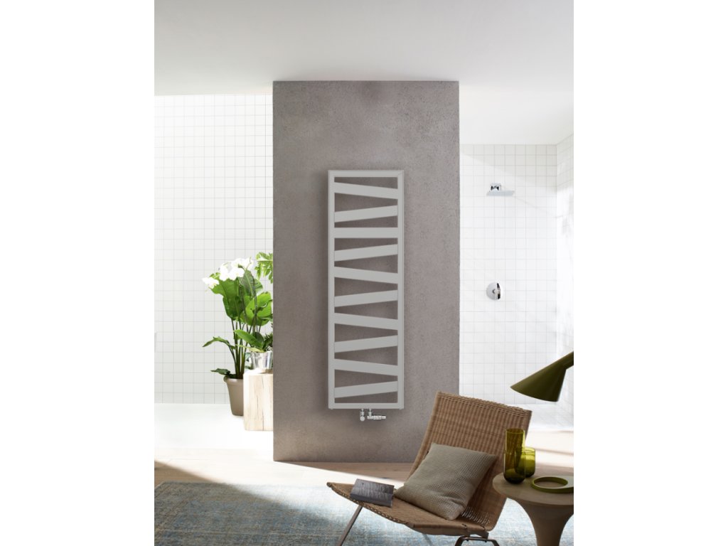 Jako by ocelový pás obepínal tento koupelnový radiátor: Zehnder Kazeane přesvědčí moderním designem a smyslem pro praktičnost. Jeho diagonálně uspořádané ploché trubky jsou inspirovány víceúrovňovými architektonickými díly. Velkorysé otvory poskytnou celé rodině dostatek místa pro zavěšení více ručníků. Tato kombinace tvaru a funkčnosti činí z tělesa Zehnder Kazeane radiátor, který přináší do koupelny prvotřídní komfort. K dostání téměř ve všech barvách a povrchových úpravách dle přehledu barev Zehnder