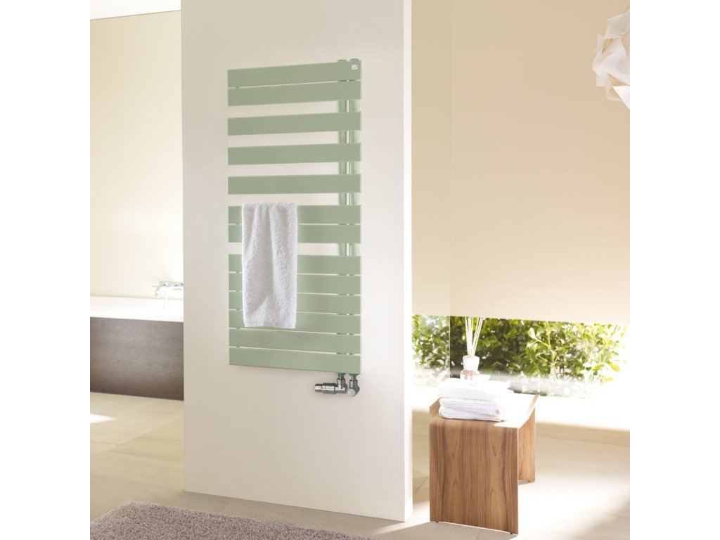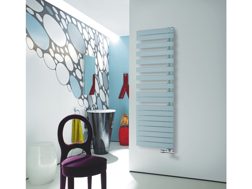 Jednostranné, asymetricky uspořádané ploché trubky 70 x 11 mm vedou od sběrných trubek Ø 38 mm do strany; ideální nasunutí ručníků k jejich nahřátí nebo usušení.