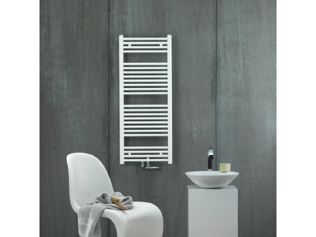 Zehnder Virando Bow představuje ideální volbu pro každého, kdo dává přednost modernímu stylu a funkčnosti. Čistý, jasný design, prezentovaný jednoduchou kombinací svislých trubek a vodorovných trubek s většími vzdálenostmi, pro snadné zavěšení ručníků.