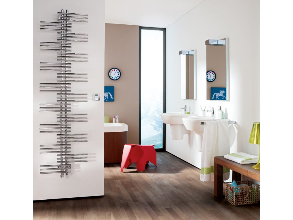 Integrovaná topná tyč je zcela skrytá nebo s krytkou v barvě radiátoru.