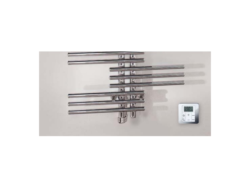 Integrovaná topná tyč je zcela skrytá nebo s krytkou v barvě radiátoru.
