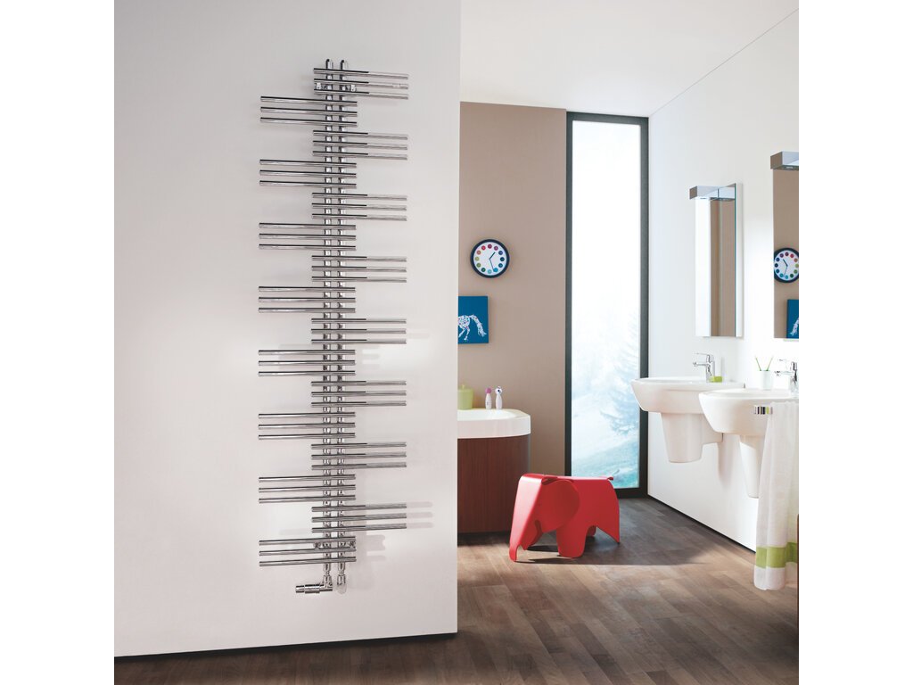 Originál ve tvaru „palmy“. Ze stran otevřené symetrické uspořádání kulatých trubek je ideální k zavěšení ručníků, županů a jiných částí oděvu. Radiátor se vyznačuje malou stavební hloubkou a jemným vzhledem.