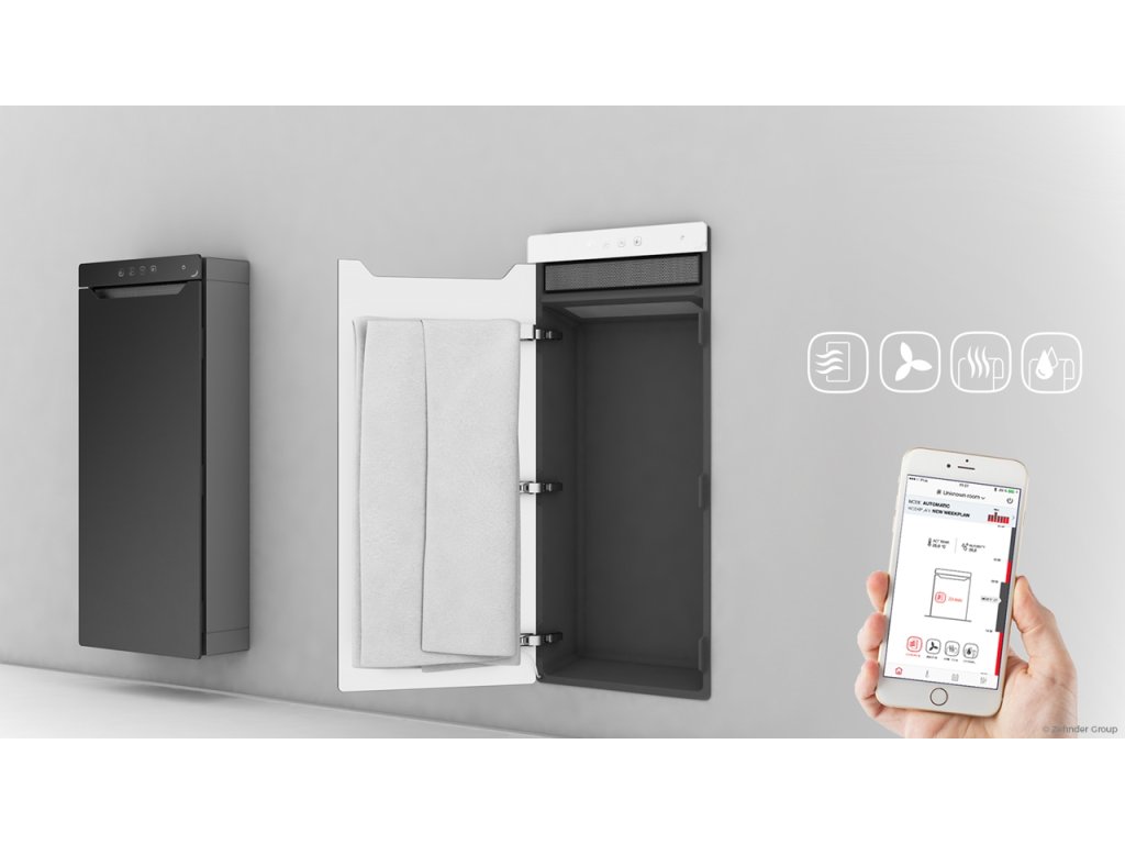 Revoluční elektrický topný modul Zehnder Zenia z programu Studio Collection ručníky příjemně nahřívá, hygienicky suší, vyhřívá koupelnu infračervenými skleněnými sálavými dvířky a výkonným topným ventilátorem. To vše v jediném zařízení v minimalistickém designu, které lze dokonale začlenit do moderní koupelnové architektury. Zehnder Zenia rychle dodává příjemné teplo a zajišťuje maximální komfort v koupelně nezávisle na systému ústředního vytápění. Snadné a intuitivní ovládání základních funkcí umožňuje dotykový panel. Individuální nastavení programů a intervalů nahřívání osušek pohodlně zařídíte prostřednictvím mobilní aplikace.