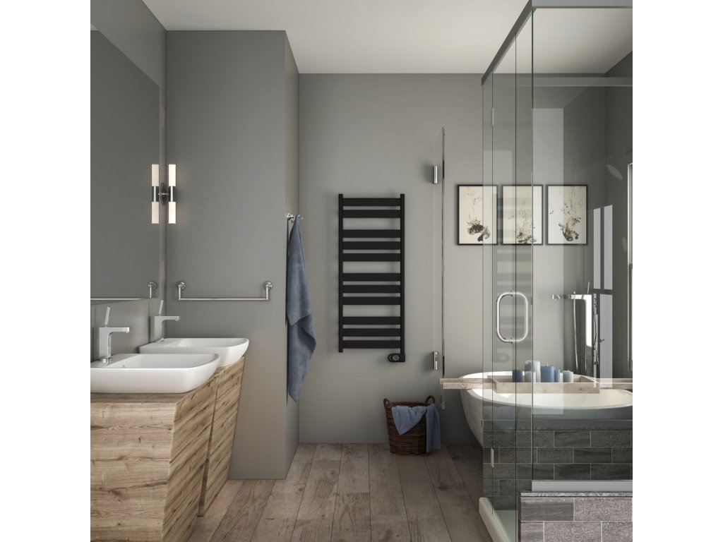 Vysoká elegance a jasné linie. Díky plochému designu vodorovných trubek přináší radiátor Zehnder Zeta do koupelny moderní vzhled a funkčnost. Velkorysý prostor mezi sadou vodorovných trubek a jejich větší vzdálenost od zdi pro snadné zavěšení a rychlejší sušení ručníků. K dispozici v barvě bílé, černé matné, Anthracite a s vysoce kvalitním chromovaným povrchem. Vhodný pro teplovodní, kombinovaný nebo čistě elektrický provoz.